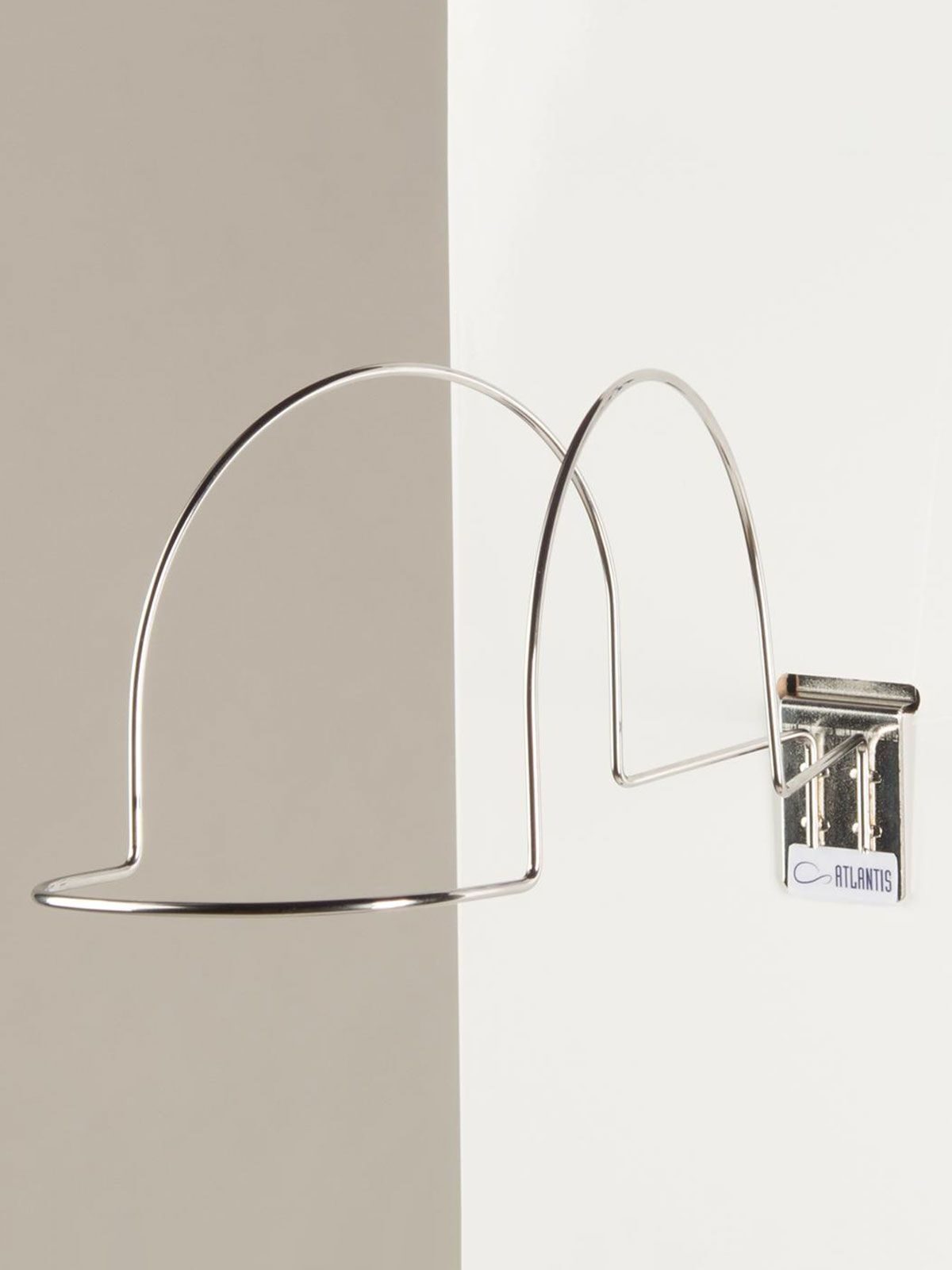 100% acciaio. Espositore con logo Atlantis. Da appendere al muro. 293 x 114,5 mm. Altezza 158,6 mm.