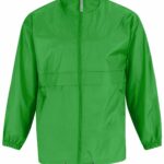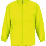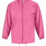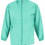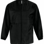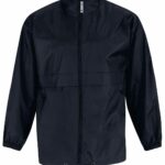 100% nylon taffetà. K-Way antivento e idrorepellente, chiusura a zip intera con tirante, cappuccio regolabile, giacca richiudibile nella tasca destra con zip bidirezionale.