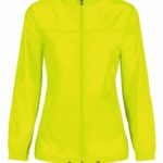 100% nylon taffetà. Giacca K-Way antivento e idrorepellente, chiusura a zip intera con tirante, cappuccio regolabile, giacca richiudibile nella tasca destra con zip bidirezionale.