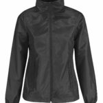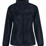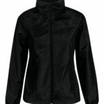 100% poliestere . Giacca antivento e antipioggia, termoisolante e idrorepellente, esterno poliestere 210T taffetà, interno 100% poliestere tricot. Taglio femminile. Cappuccio ergonomico a scomparsa, due tasche frontali e taschino interno.