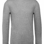 100% cotone organico o organico in-conversion ring-spun. T-shirt manica lunga, set-in, girocollo con costine, superficie liscia e regolare, morbidissima al tatto. Nessuna etichetta. Col. SG620: 90% cot. 10% visc.