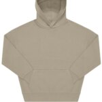 80% cotone 20% poliestere riciclato. Felpa con cappuccio a mantellina, spalle scese e taglio oversize, gender-neutral, tessuto PST, felpata internamente, sensazione lussuosa al tatto, senza etichetta. Col. SG620: 73% cot. 21% pol.ric. 6% vis.