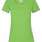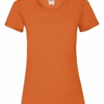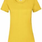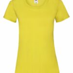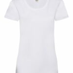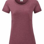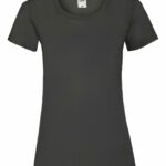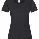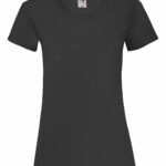 100% cotone filato ad anelli Belcoro. T-shirt manica corta girocollo con costina in cot. e Lycra, fettuccia interna per maggiore comfort, leggermente sfiancata, scollatura femminile, struttura con cuciture laterali. Col. 94: 97% cot. 3% pol. Col. HD, VF, R6, RX, VH: 50% cot. 50% pol. (Col. 30: 160 g/m²).