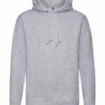 70% cotone, 30% poliestere. Felpa con cappuccio foderato in tessuto, cordino dello stesso colore, tasca a marsupio, polsini e orlo inferiore in cotone/elastan, felpata internamente, struttura con cuciture laterali, maniche set-in. Etichetta removibile. (Col. 94: 260 g/m²).Informazioni prodotto