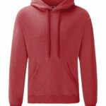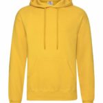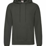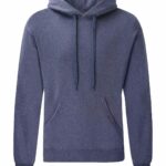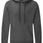 80% cotone Filato Belcoro, 20% poliestere. Felpa con cappuccio doppio con cordoncino in tinta, tasca anteriore a marsupio, maniche set-in, felpata internamente, struttura con busto tubolare. Etichetta removibile. (Col. 30/94: 260 g/m²).