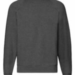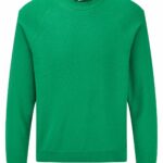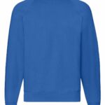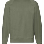 80% cotone ring-spun Belcoro, 20% poliestere. Felpa con maniche raglan, fettuccia interna in single jersey, felpata internamente. Collo, polsini e orlo inferiore in costina cotone/lycra. Struttura con busto tubolare. Etichetta removibile. (Col. 30/94: 260 g/m²).