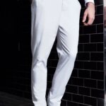 59% cotone, 39% poliestere, 2% elastan. Pantaloni informali da lavoro uomo, in leggero tessuto elasticizzato, taglio aderente e cordoncino in vita, orli stretti, 2 tasche laterali e 2 tasche sul retro con bottoni, passanti della cintura.Informazioni prodotto