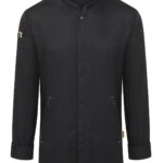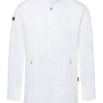 Lato anteriore: 65% cotone organico, 35% poliestere riciclato, Lato posteriore: 100% poliestere riciclato. Lato anteriore 150 g/m², Lato posteriore 150 g/m². Giacca da cuoco sostenibile, traspirante, con regolazione dell'umidità, maniche lunghe. Taglio moderno (leggermente aderente), inserto posteriore in Jersey Piqué per una maggior ventilazione e libertà di movimento, bottoni automatici, polsini con apertura. Lato anteriore con tasche con zip e tasca a filetto sulla manica sinistra, nastri a contrasto su maniche e collo. Lavabile a 60°C.Informazioni prodotto