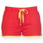 100% cotone single jersey. Pantaloncini vintage, orlo stondato in contrasto, elastico in vita con cordoncino in tessuto di colore contrastante.Informazioni prodotto
