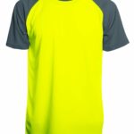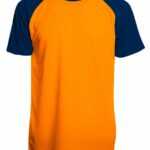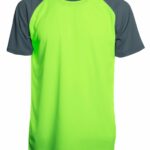 100% poliestere. T-shirt maniche corte raglan, girocollo di colore contrastante, cuciture flatlock per un maggiore comfort, struttura con cuciture laterali. Etichetta removibile.