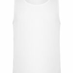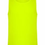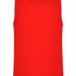 100% poliestere. Canotta con girocollo e giromanica bordati, tessuto traspirante, struttura con cuciture laterali. Etichetta removibile.