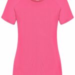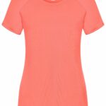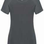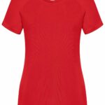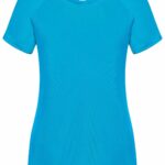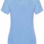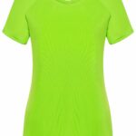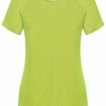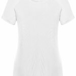 100% poliestere microforato. T-shirt maniche corte raglan, cuciture flatlock, leggermente sfiancata, struttura con cuciture laterali. Etichetta removibile.