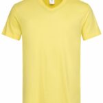 100% cotone single jersey. T-shirt manica corta, set-in, scollo a V. Struttura con busto tubolare, cucitura a doppio ago su collo, maniche e vita, nastro di rinforzo alle spalle. GYH: 85% cot. 15% visc.Informazioni prodotto