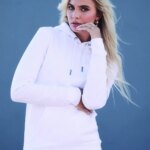 80% cotone, 20% poliestere; filato ad anello (GYH: 70% cotone, 30% poliestere). Felpa unisex, con cappuccio a doppio strato, felpata internamente, con mezzaluna centrale sul retro per la personalizzazione. Occhielli e punte in metallo. Costina elastica 1x1 tono su tono. Etichetta taglia tessuta al collo, etichetta di manutenzione a strappo laterale.