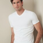 95% cotone ring spun, 5% elastane. T-shirt manica corta set-in, scollo a V, struttura con cuciture laterali, vestibilità e maniche più aderenti, etichetta strappabile. Col. GYH: 82% cot. 14% vis. 4% elas. Single jersey.Informazioni prodotto